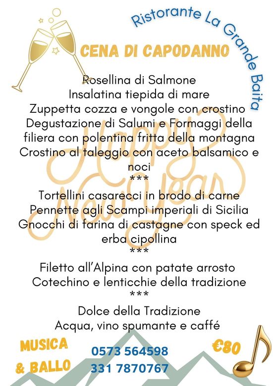 Alla Grande Baita ti aspettiamo con menu ricchi di sapori autentici, musica e atmosfera di festa!